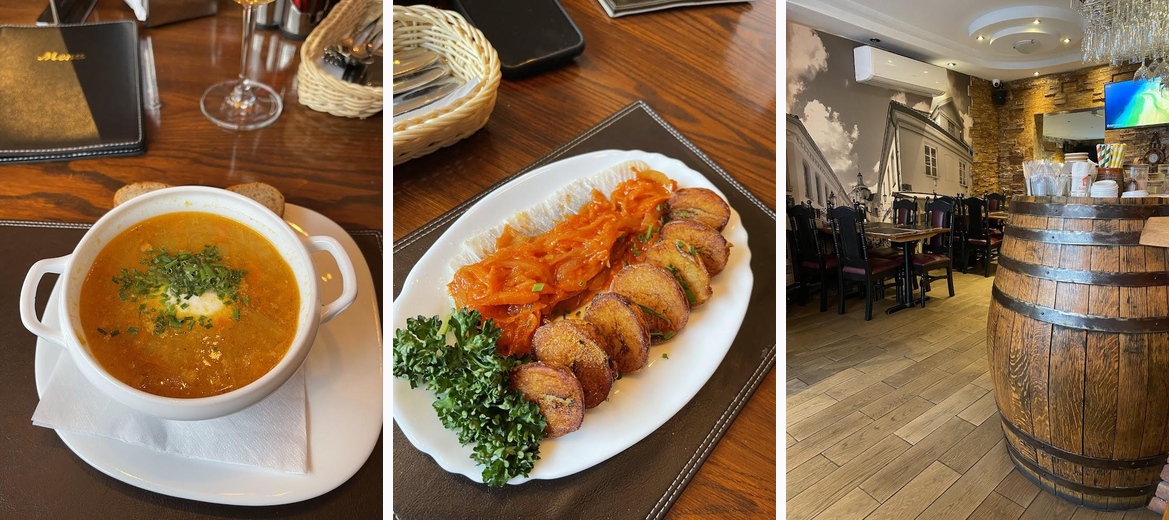 Savas Kiemas specializes in Lithuanian cuisine, offering traditional dishes like cepelinai, schnitzel, and cold borscht.